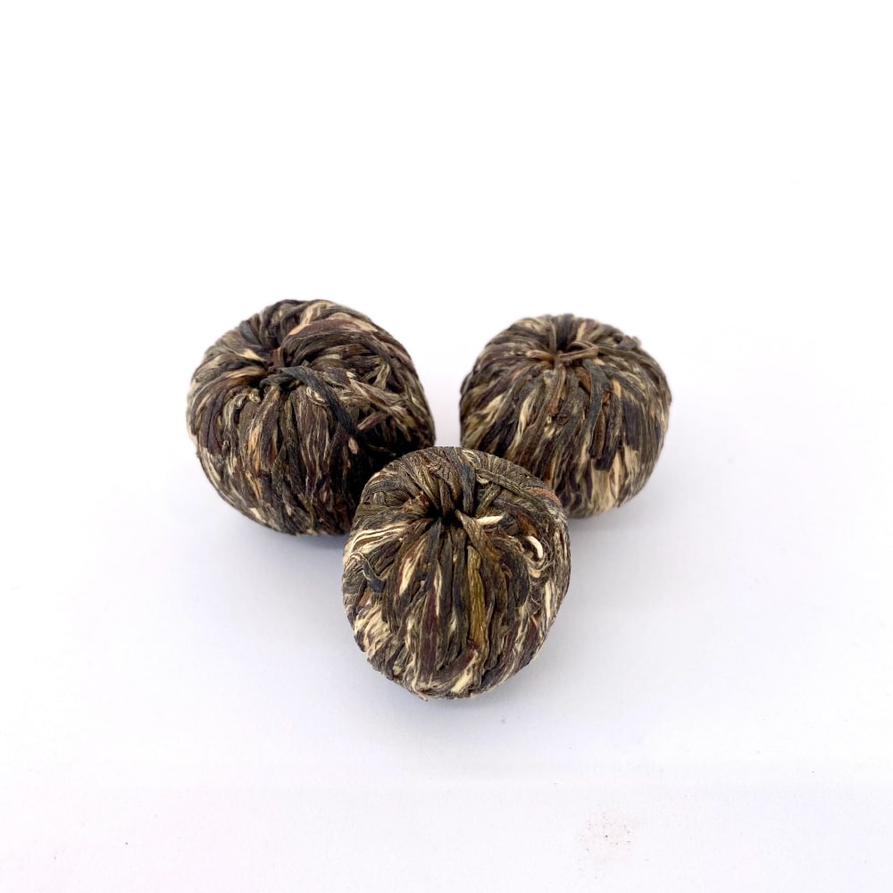 The sweet and white flesh of a lychee fruit represents love and romance. To produce this tea, we used tippy, spring-harvested silver needle white tea to individually hand-tied each blossom into a jade treasure sphere with a red "lychee" flower waiting to blossom inside. After infusion, the jade sphere slowly opens into an elegant dance of vibrant tea and flowers.